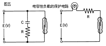當將干簧管用于電容性負載例如電容器、白熾燈或者長電纜(結(jié)束)時,其觸點將受到大浪涌電流地沖擊。因此建議采用浪涌抑制器或者限流電阻保護電路(見圖五)。